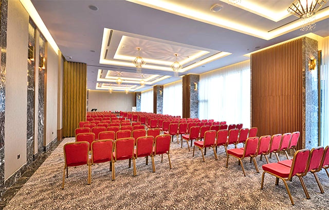 En son teknolojik ekipmanlarla donatılan toplantı salonlarımızla, iş hayatına ve çeşitli etkinliklere misafirperverlik edip, ihtiyaçlarınızı profesyonelce karşılamayı hedefliyoruz.